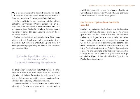 Hinweis zur OptimierungImpressumWichtiger HinweisEinleitungWas ist eine Depression?Sieben Lügen, die dir eine Depression erzähltFür AngehörigeSchlusswortÜber die AutorinDeine Anlaufstellen für Hilfe und BeratungBücher, die weiterhelfen