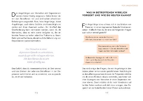 Die Lügen, die eine Depression erzählt, isolieren und entmutigen Betroffene. Eine der Wahrnehmung verzerrenden Lügen lautet zum Beispiel: "Dir wird es nie wieder besser gehen". Was es daher dringend braucht: Ein Buch gegen diese negative Abwärtsspirale, einen mitfühlenden Leitfaden, um psychische Erkrankungen zu entmystifizieren und die Gespräche darüber zu erleichtern. Betroffene werden verstanden, und sehen, dass sie damit nicht allein sind. Auch Freunde und Angehörige finden Hilfe und konkrete Tipps für einen einfühlsamen Umgang mit den Betroffenen. Ein Buch, das Verständnis schafft und akute Entlastung spendet - durch einfühlsame Worte und liebevolles Anerkennen dessen, was gerade ist.