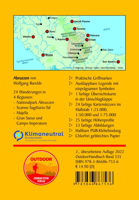 Anders als die Alpen sind die Abruzzen aber noch wenig überlaufen und bieten daher mit ihren einsamen Bergdörfern ein authentisches Erleben der Bergwelt. Nach einer Einleitung zur Region beschreibt der Autor 24 Tageswanderungen in verschiedenen Gebieten der Abruzzen: allen drei Nationalparks sowie dem Sagittario-Tal mit Scanno. Bei der Tourenauswahl hat der Autor bewusst auf Vielfalt geachtet: Die Touren sind mal als Strecken-, mal als Rundtour beschrieben und entsprechen verschiedenen Schwierigkeitsniveaus. Alle bieten besondere Highlights, seien es kulturelle oder natürliche Sehenswürdigkeiten oder einfach nur tolle Aussichten. Wie bei der Reihe "Outdoor Regional" üblich gibt es bei jeder Tour Hinweise, inwieweit die Wanderung für Familien bzw. Kinder sowie für Hunde geeignet ist. Für alle Wanderungen stehen kostenlose GPS-Daten zur Verfügung.