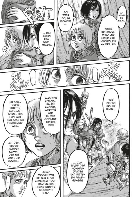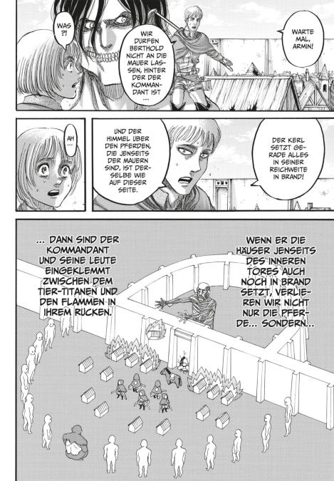 Um in Erens Geburtshaus zu gelangen und die Mauer Maria zurückzuerobern, begibt sich der Aufklärungstrupp nach Shiganshina. Wird es Eren und seinen Mitstreitern gelingen, dort ihre ehemaligen Gefährten zu besiegen und »die Wahrheit« über ihre Welt zu erfahren?