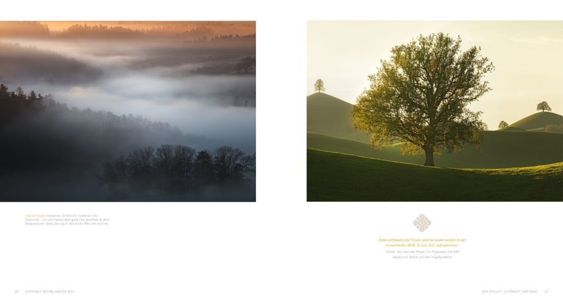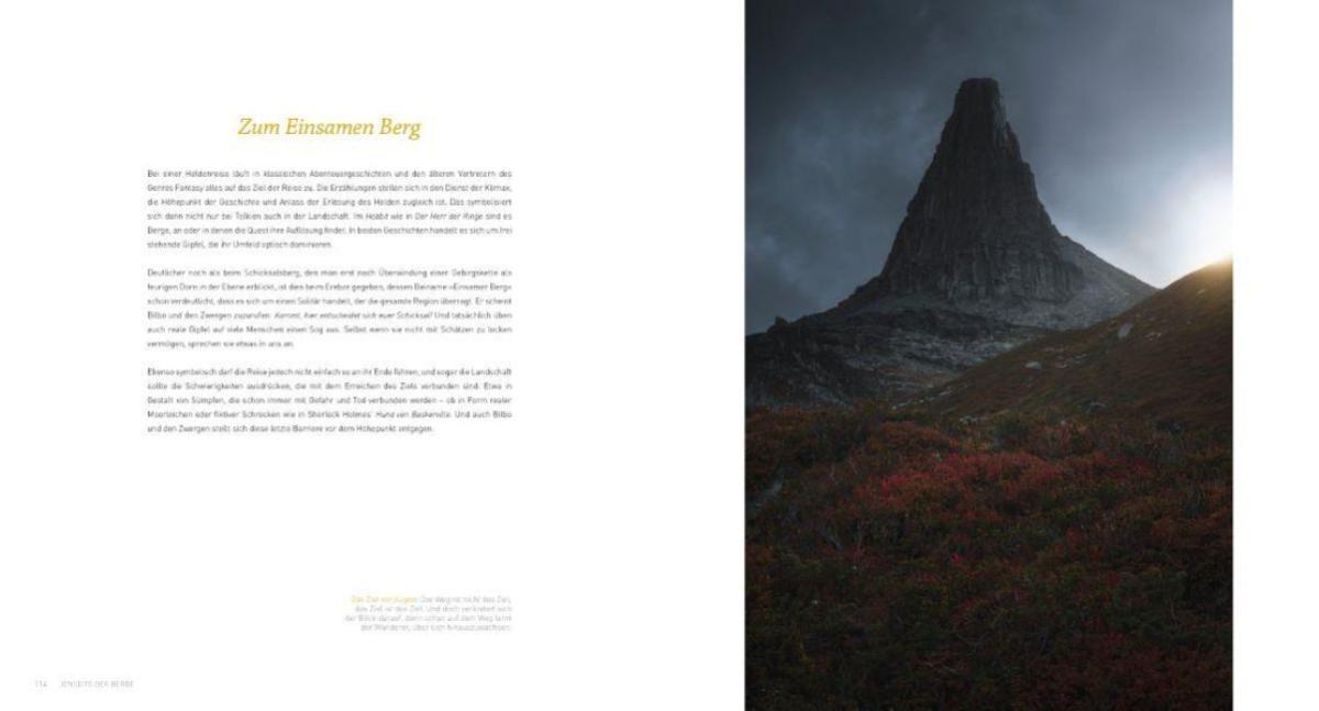 Heimat der HobbitsAuf der Suche nach Mittelerde. Tolkiens Welt scheint näher als man denkt: Die Schweizer Alpen bieten Landschaften zwischen Fiktion und Realität. Der Name Auenland bezeichnet ein Gebiet von ungefähr 18.000 Quadratmeilen in Eriador zwischen dem Fluss Baranduin und den Fernen Höhen. Tolkien-Fans wissen das natürlich. Was sie aber vielleicht nicht wissen, ist, dass die Schweizer Alpen eine ähnliche Kulisse bieten wie die berühmte, aber rein fiktive Hobbit-Heimat. Eine fotografisch-literarische Reise in eine andere Welt, jenseits der Berge, durch das Schattenreich und ins Elbenland.
