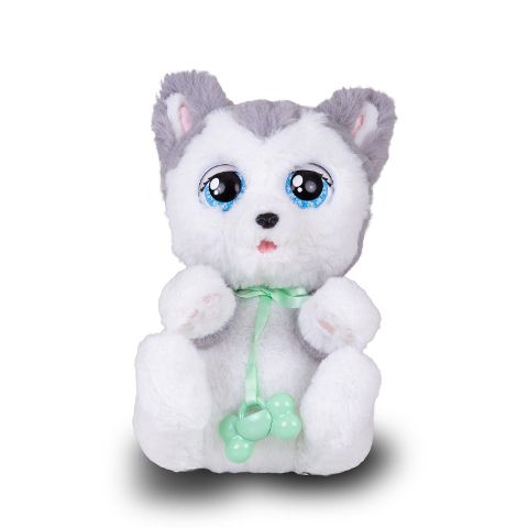 Lerne die neuen Baby Paws Hundewelpen kennen, die süßesten Hündchen aller Zeiten, die es lieben, von dir herumgetragen und gekuschelt zu werden. Nimm sie mit, wohin du auch gehst, und kümmere dich um sie wie um ein richtiges Hundebaby! Diese niedliche Hundedame heißt Coco, sie ist ein Husky und sie ist verrückt nach Essen. Sie könnte einfach den ganzen Tag Hundeleckerlies futtern. Wenn du Coco ihren Schnuller aus dem Mund nimmst, kannst du beobachten, wie sie zum allerersten Mal die Augen öffnet und dabei superniedliche Geräusche von sich gibt. Sooo süß! Öffne ihre Schmusedecke mit passendem Hundeleckerli-Print und nimm die kuschelig weiche Hundedame gleich auf den Arm, denn sie braucht ganz viel Wärme! Dabei wirst du feststellen, dass sie genau so viel wiegt wie ein echter Hundewelpe. Ist sie vom vielen Spielen müde geworden, gib Coco einfach ihren Schnuller zurück und sie wird zufrieden einschlafen, während sie welpenähnliche Laute von sich gibt. Ihren eigenen Schlafplatz hat der kuschelig weiche Welpe, bei dem sich auch Kopf und Beine bewegen lassen, übrigens selbst dabei, denn die Verpackung lässt sich kinderleicht in ein praktisches Hundebettchen verwandeln. Aber es gibt noch viel mehr zu entdecken! Zum Herumtragen deines süßen Welpen kannst du die Schmusedecke blitzschnell zu einer praktischen Tragetasche mit Griff falten. So hast du deinen Liebling immer ganz nah bei dir! Insgesamt gibt es neben Coco noch zwei weitere Welpen der Baby Paws-Kollektion, Maggie und Spotty. Geeignet für Kinder ab 18 Monaten.