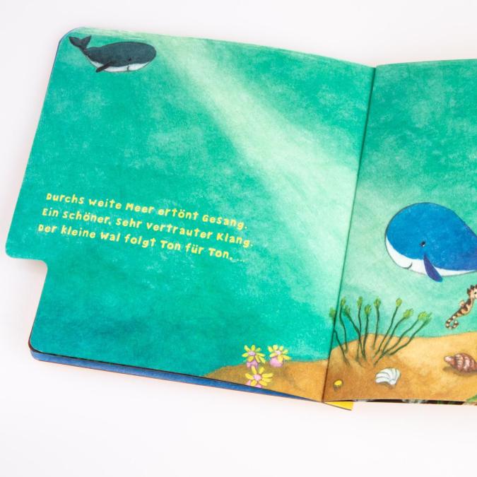 Der kleine Wal schwimmt durch das Meer, und taucht dort fröhlich hin und her: Mit den Seepferdchen spielt er Verstecken, mit dem Seehund tobt er um die Wette - und wer wartet am Ende der Reise, um mit dem kleinen Wal zu kuscheln? Mit farbenfrohem Register als Blätterhilfe für Kinder ab 1 Jahr.