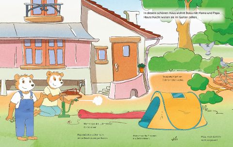 Was muss alles noch erledigt werden? Wer beobachtet die drei gespannt beim Aufbau? Und wen möchte Bobo zum Kuscheln mit ins Zelt nehmen? Kleine Hinweise verraten, in welchen Hintergrund die Figuren und Gegenstände am besten passen und laden zum weiteren Erzählen und Betrachten ein.