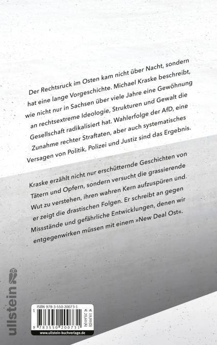 Der Rechtsruck im Osten kam nicht über Nacht, sondern hat eine lange Vorgeschichte. Michael Kraske beschreibt, wie nicht nur in Sachsen über viele Jahre eine Gewöhnung an rechtsextreme Ideologie, Strukturen und Gewalt die Gesellschaft radikalisiert hat. Wahlerfolge der AfD, eine Zunahme rechter Straftaten, aber auch systematisches Versagen von Politik, Polizei und Justiz sind das Ergebnis. Kraske erzählt nicht nur erschütternde Geschichten von Tätern und Opfern, sondern versucht die grassierende Wut zu verstehen, ihren wahren Kern aufzuspüren und er zeigt die drastischen Folgen. Er schreibt an gegen Missstände und gefährliche Entwicklungen, denen wir entgegenwirken müssen mit einem »New Deal Ost«.