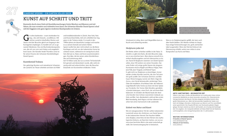 Entdecken Sie Italiens verborgene Schätze: La Verna mit ihrer romantisch in den Bergen gelegenen Abtei, die wunderschöne Altstadt von Cefalu, das zauberhaft in einer Lagune gelegene Eiland Torcello oder das malerische Örtchen Triora in Ligurien. Wir stellen Ihnen 60 einmalige und unbekannte Stadtschönheiten Italiens vor, in denen Sie noch ungestört flanieren und die reiche Geschichte des Landes bestaunen können. Gehen Sie auf Entdeckungsreise!