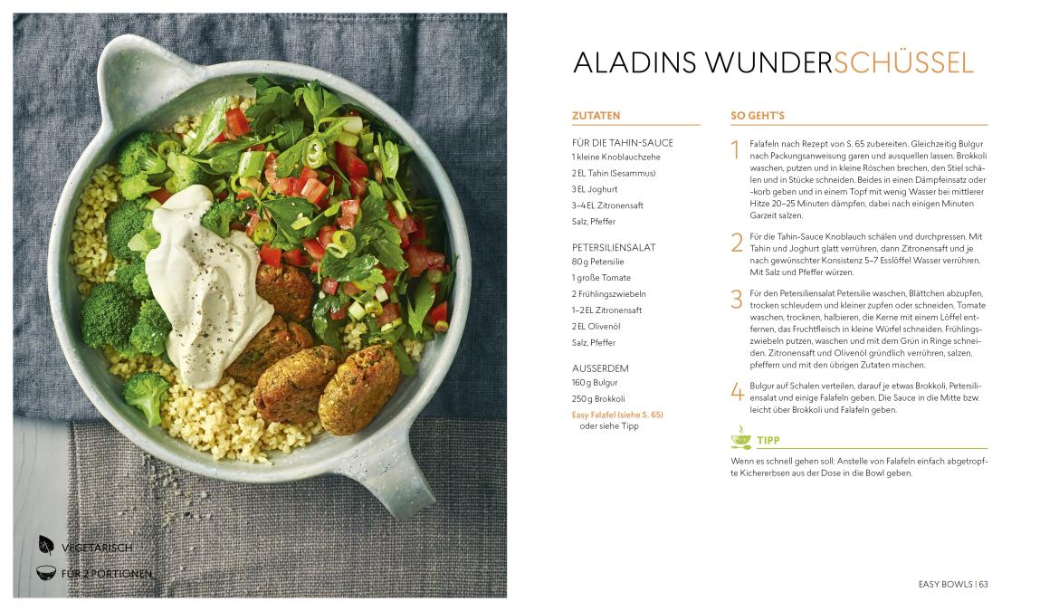 Schalen voller gesunder Köstlichkeiten! Auf den Speisekarten angesagter Lokale sind sie mittlerweile ein Muss: Buddha-Bowls machen nicht nur glücklich und zufrieden, sondern sind noch dazu richtig gesund. Die ausgewogene Zusammenstellung aus Kohlenhydrat-, Fett-und Proteinquellen versorgt den Körper mit allem, was er braucht, um Kraft zu tanken. In „Buddha Bowls“ stellt die Bestseller-Autorin Tanja Dusy 50 Rezepte für Breakfast Bowls, schnelle Easy Bowls und raffinierte Super Bowls zusammen und gibt den Lesern außerdem zahlreiche Grundrezepte an die Hand, damit das Kombinieren eigener Bowl-Kreationen im Handumdrehen gelingt. So kann jeder seine eigene Lieblingskreation schaffen – auch Vegetarier und Veganer kommen voll auf ihre Kosten!
