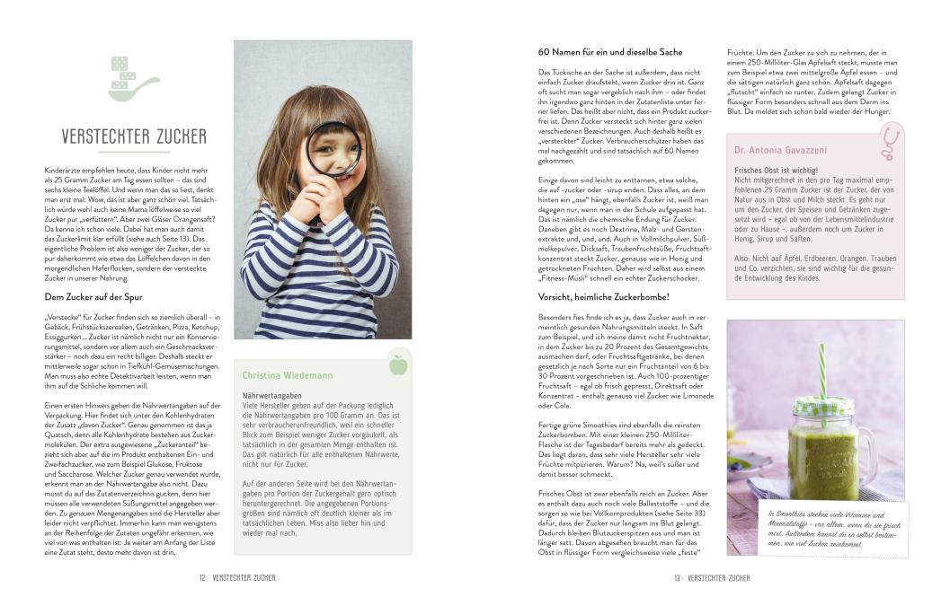 Kinder lieben Süßes, trotzdem sollte Zucker für sie besser tabu sein: Denn übermäßiger Konsum führt schnell zu "Überzuckerung" – und die ist nicht nur verantwortlich für Karies und Übergewicht, sondern beeinflusst auch das Verhalten und kann schon im Kindesalter zu Diabetes führen. Aber wie macht man Kindern Gesundes schmackhaft, wenn sie statt auf Gemüse und Vollkorn Lust auf Gummibärchen haben? Diese Frage hat sich auch Cathy Hummels gestellt, für die gesunde Ernährung seit der Geburt ihres Sohnes Ludwig noch einmal einen ganz anderen Stellenwert bekommen hat. Um anderen jungen Müttern zu zeigen, wie gefährlich zu viel Zucker ist und wie man ganz easy für die Kleinen zuckerfrei kochen kann, hat sie sich Verstärkung geholt: die Kinderärztin Dr. med. Antonia Gavazzeni und Christina Wiedemann, eine erfahrene Ökotrophologin. Gemeinsam haben die drei über 50 zuckerfreie Rezepte entwickelt, die das Zeug zum Lieblingsessen haben und auch im stressigen Mama-Alltag auf Anhieb gelingen. Dazu verrät Cathy Hummels viele Tipps und Tricks – und Persönliches aus ihrer Küche und Ludwigs Kinderzimmer.