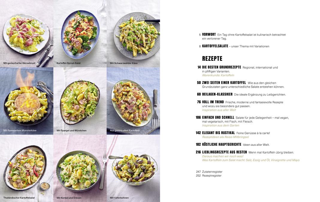 Martina und Moritz komponieren Kartoffelsalate gekonnt zu köstlich-innovativen Beilagen, raffinierten Vorspeisen und leichten Hauptgerichten – mit Gemüse, Eiern, Käse, Fleisch, Geflügel, Wild und Innereien, Fisch und Meeresfrüchten.
