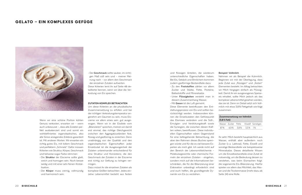 Über 75 individuelle Rezepte für Eiscreme, Sorbet und Co. überzeugen durch intensiven Geschmack und außergewöhnliches Aromenpairing. Begleitet werden sie von Tipps zum Variieren und Servieren. Hauptakteure von Kakao über Haselnuss und Mango bis Vanille werden detailliert in ihren geschmacklichen und texturrelevanten Eigenschaften porträtiert und mit perfekt auf sie abgestimmten Eiskreationen veredelt.