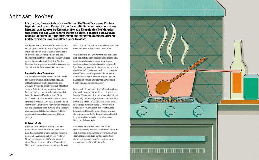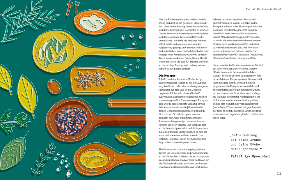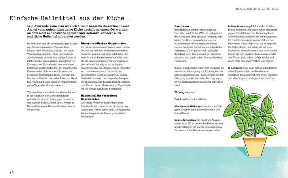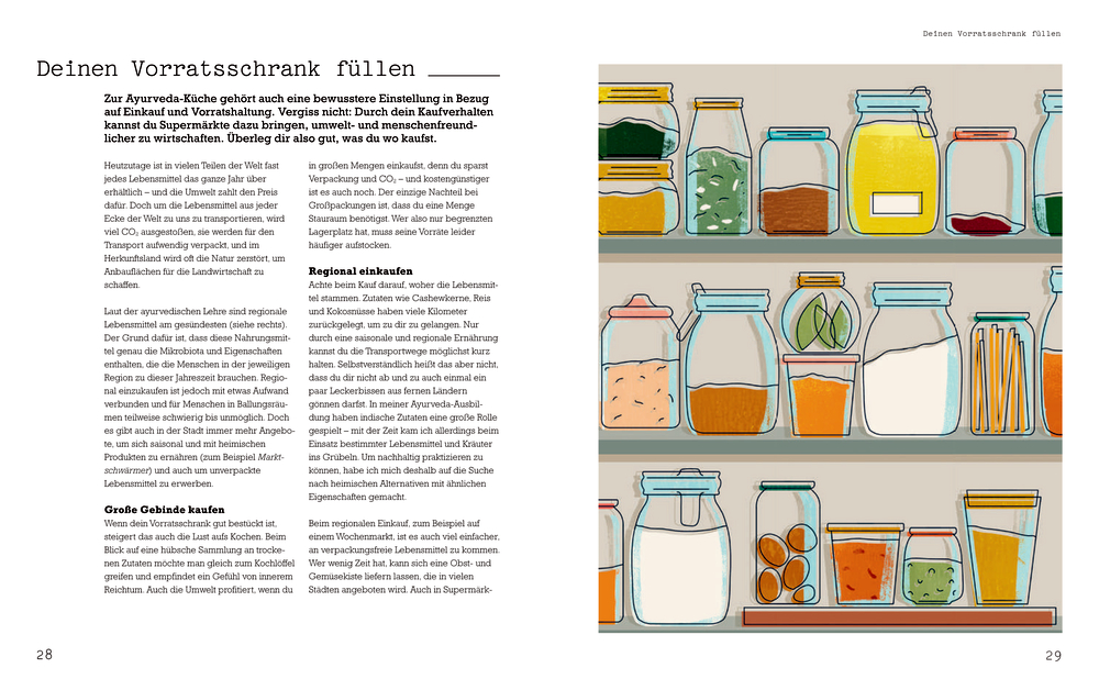 Mit Einführung in die Grundlagen des Ayurveda, Einrichtungs-Tipps für deine Ayurveda-Küche und vielen Yoga-, Meditations- und Achtsamkeitsübungen. Stelle ayurvedische Gewürzmischungen selbst her und stärke deine Gesundheit mit Rezepturen aus der eigenen Küchenapotheke.