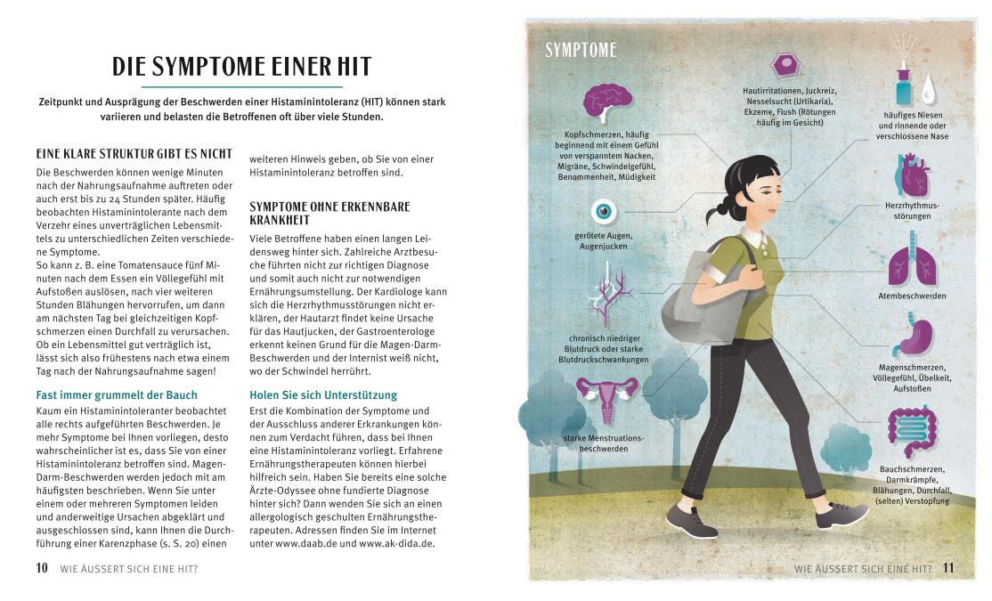 Man nimmt an, dass am Abbau beteiligte Enzyme wohl nicht ausreichend arbeiten. Ganz geklärt sind die Ursachen aber noch nicht. Auch die Diagnose der Histaminintoleranz gestaltet sich schwierig, verlässliche Tests gibt es nicht. Lassen die Symptome durch einen zwei- bis dreiwöchigem Verzicht auf histaminarme Lebensmittel nach und treten durch erneuten Verzehr wieder auf, können sie auf eine Unverträglichkeit hinweisen. Praktische Tipps für diese Karenzphase und alles Weitere über die körperliche Fehlfunktion, verraten wir Ihnen im Buch „Histaminintoleranz“.