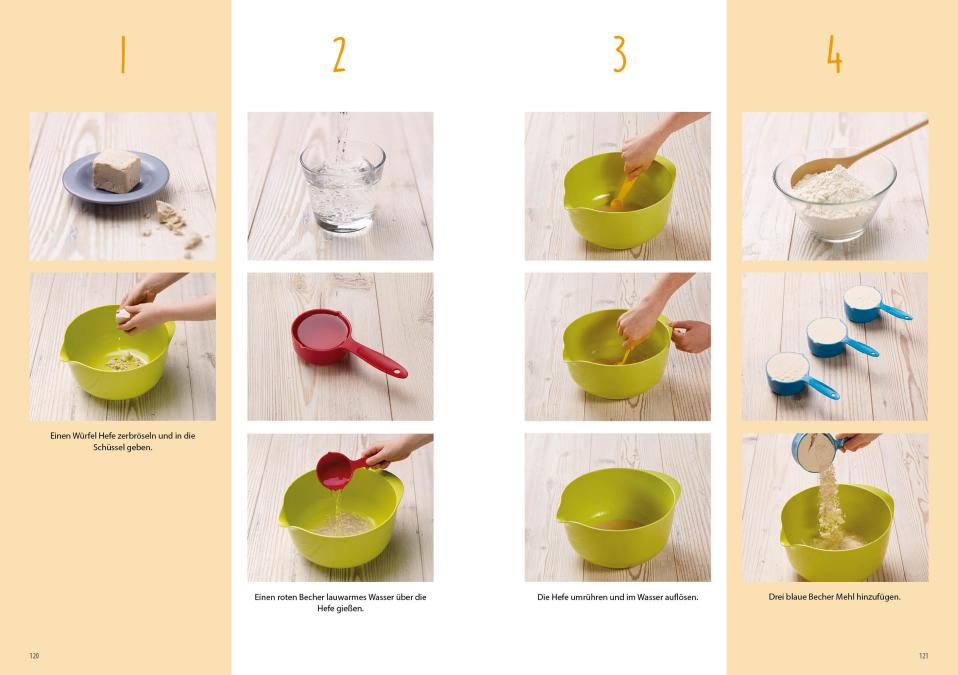 Mit der neuen Becherküchentechnik ist es Kindern möglich, nahezu selbstständig Kuchen, Brote oder Plätzchen zu backen. So werden Eigenständigkeit und Selbstbewusstsein des Kindes gestärkt.