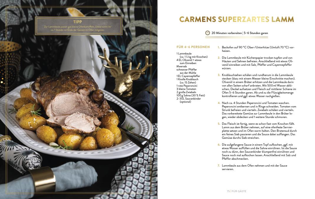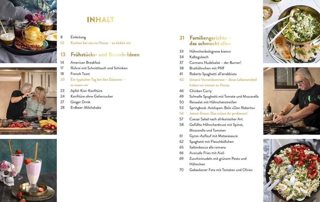 Carmens berühmter Nudelsalat, Roberts Spaghetti all’arrabbiata oder Paella Valenciana nach Familienrezept – all die Lieblingsgerichte der berühmten Millionärsfamilie können Fans jetzt endlich zu Hause nachkochen. Ihre Leibspeisen aus der deutschen Heimat kombinieren die Geissens mit frischer, mediterraner Küche und Highlights von ihren Reisen. Gerichte wie Caesar Salad, Kaiserschmarrn oder Roberts Kölsche Currywurst schmecken garantiert der ganzen Familie. Für Gäste wird auch mal der Steak-Salat »El Gaucho« mit Maniok-Fritten oder Carmens superzartes Lamm serviert. Bei den 60 Lieblingsrezepten der Geissens ist für jeden etwas dabei!