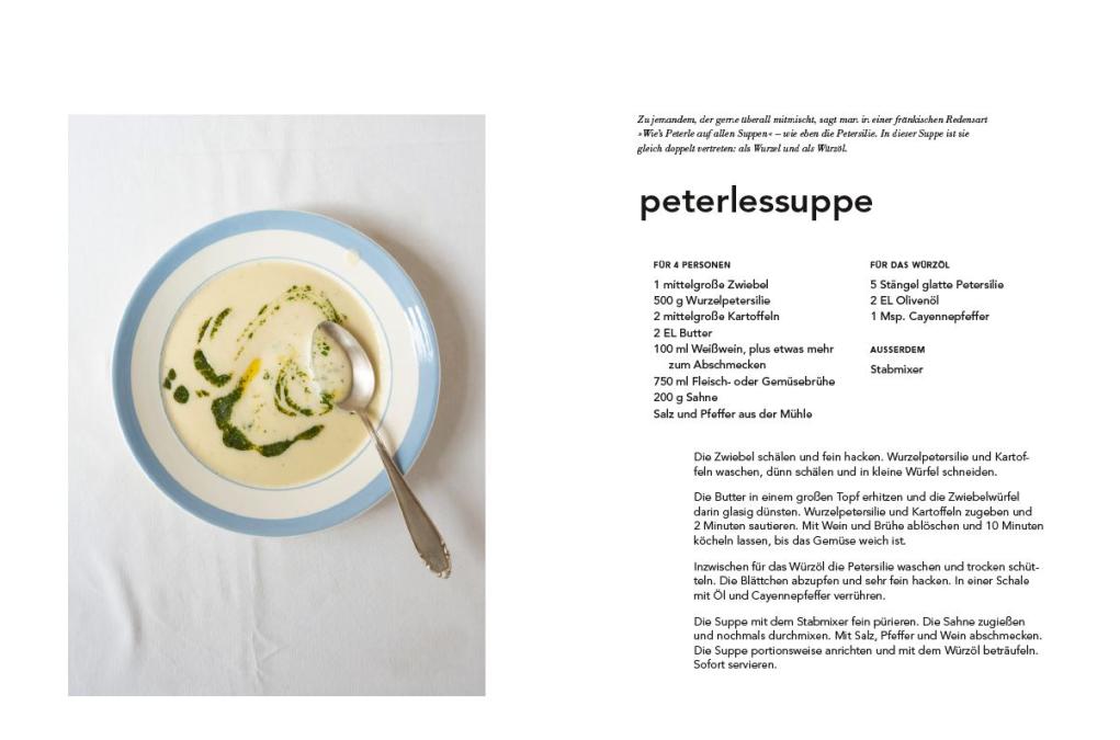 schmackhaftem Essen versorgen. In ihrer Küche wurden nur regionale und saisonale Lebensmittel verwendet, die meist aus der eigenen Landwirtschaft stammten. Neben deftigen Klassikern wie Schweinebraten und Kalbsschnitzel kamen auch regionale Spezialitäten wie Bratwürste im Kohlblatt oder Fränkische Hochzeitssuppe auf den Tisch. Viele Rezepte gab sie an ihre Kinder und Enkelkinder weiter, die mit diesem Buch nun,