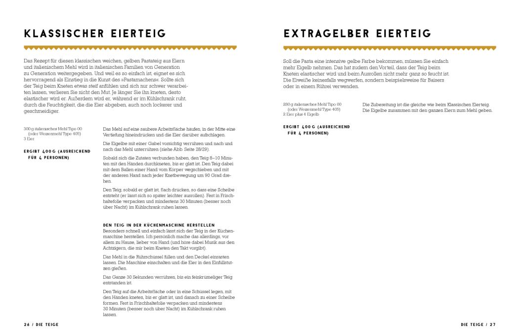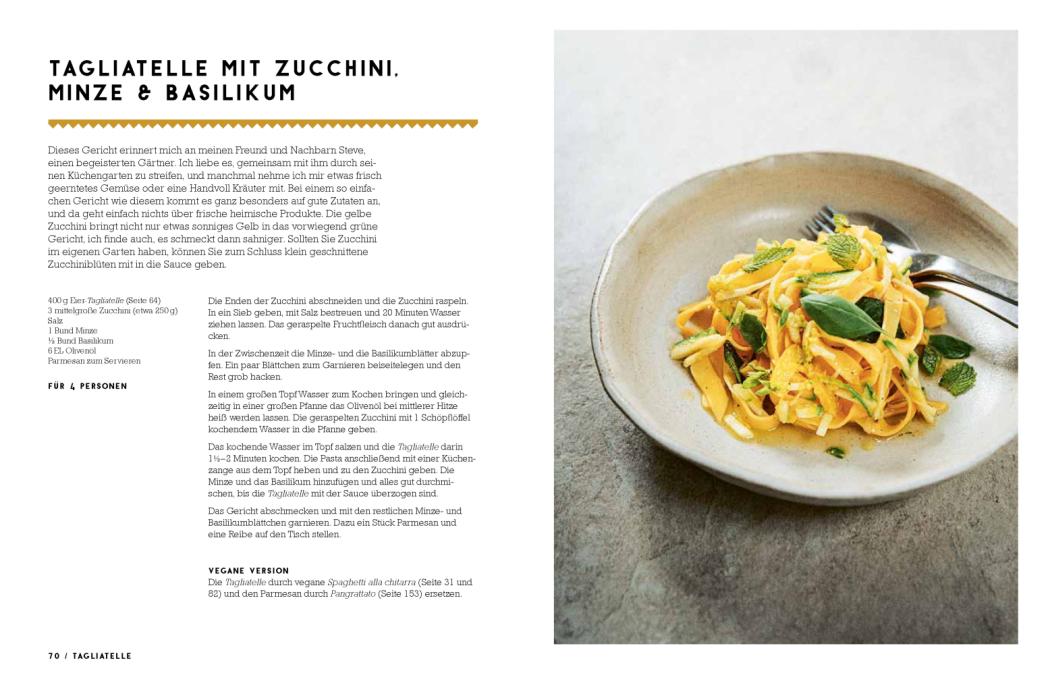 Über 40 köstliche Pasta-Rezepte zeigen, wie die selbst hergestellten Nudelsorten perfekt in Szene gesetzt werden können. Bei gestreiften Tagliatelle mit Artischocken und Kapern, tiefschwarzen Taglerini mit Krabben oder selbstgemachter Lasagne wird Ihnen sicherlich das Wasser im Mund zusammenlaufen. Auch Rezepte für gefüllte Pasta sind im Nudel-Kochbuch enthalten. Gepunktete Tortellini mit Ricotta und Spinat sind genauso zu finden wie Gorgonzola-Birnen-Cappeletti. Und wie wäre es mal mit unbekannteren Nudelsorten? Probieren Sie rot-gelb-gestreifte Garganelli mit Miso und Aubergine oder grüne Capunti mit Knoblauchpesto und Mandeln.
