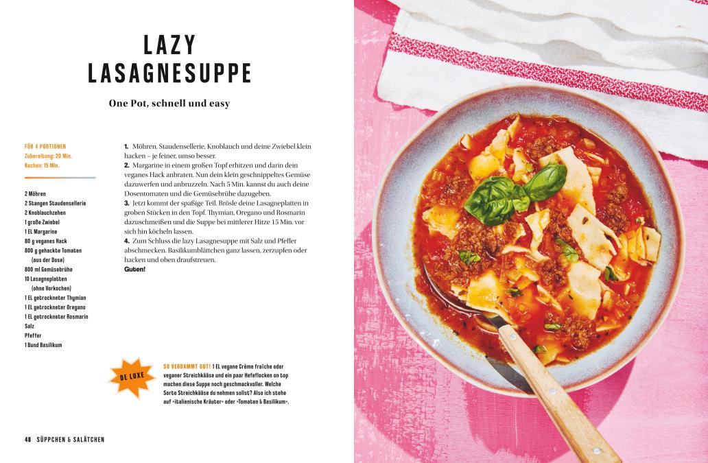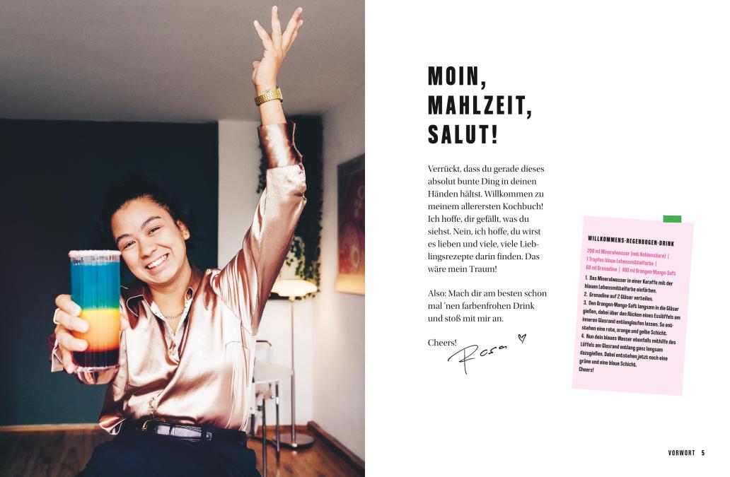 Veganer Lifestyle trifft Comfort Food: Rezepte und Food-Hacks von Instagram-Shootingstar Rosa RoderigoIch koch‘ mir die Welt so bunt, wie’s uns gefällt: Instagram-Star Rosa Roderigo zeigt auf ihrem Kanal „Rosa kocht grün“ tierfreies Kochen mit Spaß - unkompliziert und leicht und garantiert schmackofatz. Rosa präsentiert ihre neuesten Lieblingsrezepte, von Lasagnesuppe bis Köttbullar, von Grillfackeln bis Riesen-Cookies – modernes Comfort Food für jede Gelegenheit, alltagstauglich, auch für den kleinen Geldbeutel und so bunt gemischt wie das Leben heute. Und weil Herd-Held*innen wie Rosa immer eine Lösung zur Hand haben, verrät sie auch ihre besten Koch- und Foodhacks. Von wegen nur Salat und Gemüse! Rosa kocht nicht nur vegan, sondern leibspeisenlecker, einfach, bunt – und mit ganz viel Liebe!