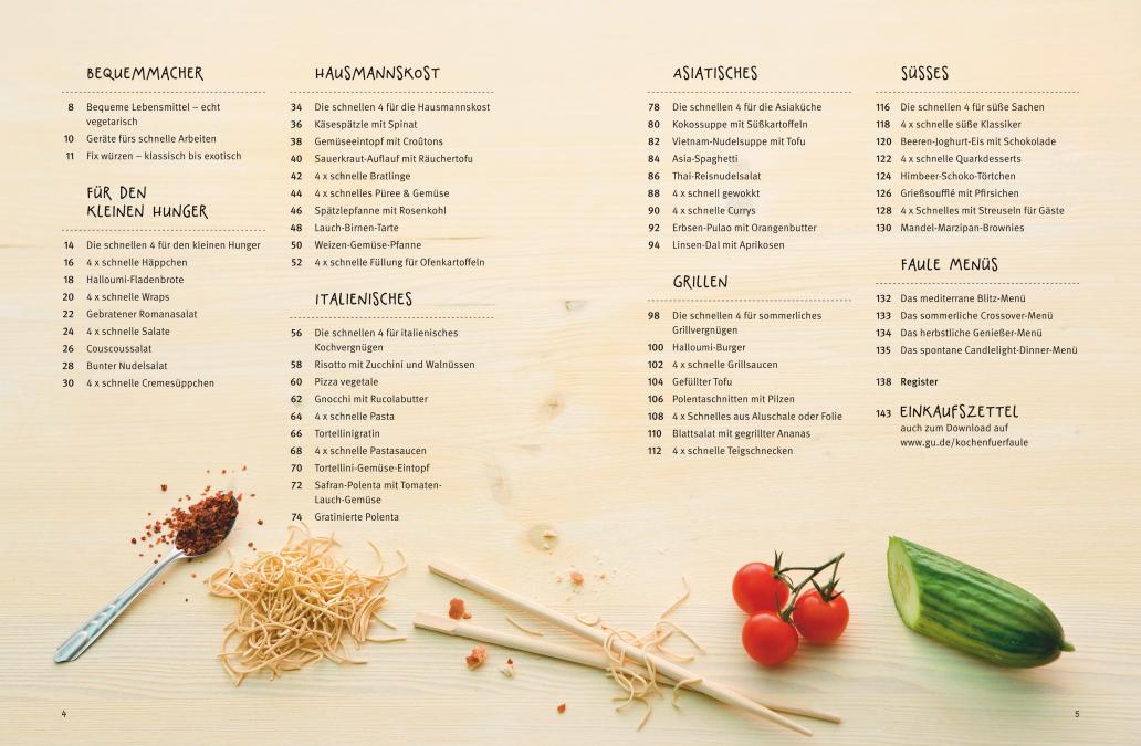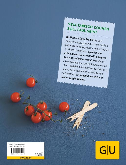 Bergeweise Gemüse schnippeln, Hülsenfrüchte über Nacht einweichen und tagelang Sprossen züchten - damit ist jetzt Schluss! Denn mit Band 3 der Kochen für Faule-Reihe ziehen Spontaneität und Entspannung endlich auch ins Küchenleben der Veggie-Fans ein. Dass die fleischlose Küche die Körner-Öko-Ecke längst verlassen hat und zum Kochtrend avanciert ist, zeigen die beachtlichen Verkaufszahlen der vegetarischen GU-Kochbücher. Mit Vegetarisch für Faule kommt jetzt noch mehr Speed in die grüne Küche! Denn mit einer cleveren Produktauswahl, praktischen Geräten und wenigen Arbeitsschritten lässt es sich herrlich einfach kochen und richtig bequem genießen. Ob Rucola-Ziegenkäse-Wrap, Sauerkraut-Tofu-Auflauf, Halloumi-Burger oder Cremetörtchen - alle Rezepte basieren auf fixen, vegetarischen Produkten, die schnell zubereitet sind. Fertiggerichte, Geschmacksverstärker und Zusatzstoffe sind dabei tabu. Denn dieses Buch beweist - Bequemlichkeit und gesunder Genuss lassen sich wunderbar vereinen!