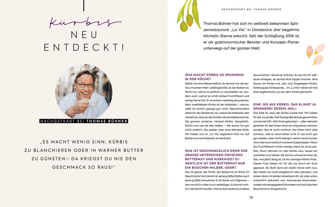 Spannende Interviews mit Küchenprofis wie Cornelia Poletto, Haya Molcho, Tim Raue, Maria Groß, Lisa Angermann (The Taste), Christian Hümbs (Das große Backen), Paul Ivic, Nils Henkel und vielen mehr