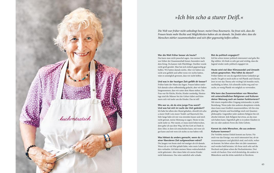 Von Oma mit Liebe: Die besten Kuchentratsch-Rezepte Kuchen wie von Oma sind das Beste für Kaffeeklatsch, Kuchentafeln und Geburtstage. Dieses Backbuch liefert die leckersten Rezepte für jeden Backofen! Erinnern Sie sich auch noch an diesen einen Lieblingskuchen von Ihrer Oma? Egal ob Apfelkuchen, Marmorkuchen oder Donauwellen – der Kuchen aus Omas Backrohr weckt Kindheitserinnerungen und erinnert an liebgewonnene Geschmäcker und Rituale. Wenn Sie also auf der Suche sind, nach echten, richtigen Großmutter-Rezepten, dann ist das Kochbuch von Katharina Mayer bestimmt passend. Sie betreibt den Münchner Kuchentratsch. Hier backen fast 50 Omas und Opas ihre altbekannten Kuchen und tauschen sich aus. Neben köstlichen Rezepten entsteht so für die Rentner auch viel Unterhaltung. Kuchen aus München jetzt zum Nachbacken Das Unternehmen beliefert mehr als 20 Cafés in München – es kann also gut sein, dass sie schon mal ein Stück probiert haben. Jetzt gibt es die Rezepte zum Nachbacken und selbst verschenken. Überlegen Sie sich eine Gelegenheit, laden Sie Freunde ein, feiern Sie Geburtstag oder gönnen Sie sich einfach so ein Stück Glück. Bei der Auswahl helfen die Kategorien: Kleine Leckerbissen Lieblingskuchen für jeden Tag Torten für jeden Anlass Trendig & Aus aller Welt Die besten Rezepte – altbewährt Jede Oma bringt ihre Lieblingsrezepte ein,  oft sind diese 100 x gebacken und perfektioniert. Das heißt nicht, dass altmodisch gekocht wird. Auch neue Süßungsmittel oder moderne Gewürze finden Platz. Ebenso zeigen die Omas, dass auch sie Lust an neuen kreativen Gerichten haben. Probieren Sie unbedingt: Baumkuchenspitzen von Oma Anni oder Kirchweihnudeln von Oma Paula – beides kleine Leckereien für die Enkel Wiener Schokoladen-Gugelhupf von Oma Rosemarie und Zimtschneckenkuchen Die dekorative Panamatorte und die klassische Linzertorte von Oma Irmgard Einen veganen Rote-Bete-Schokokuchen von Oma Paula und die Windbeuteltorte von Oma Milena wenn Sie Gäste beeindrucken wollen Ganz viel Geschmack Nicht nur die köstlichen Rezepte aus dem Rohr, sondern auch die persönlichen Geschichten und kleine Interviews mit Oma und Opa finden in dem hübsch bebilderten Backbuch ihren Platz. So verraten abwechseln die Großmütter, wie Biskuit, Mürbeteig oder Hefeteig hergestellt wird. In dem Rezeptbuch finden Sie Klassiker, Süßes, Fruchtiges, Kekserezepte, Törtchen, Muffins und viele neue Kreationen mit Oma-Superpower.