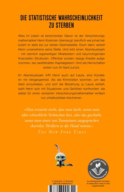 Im Abenteuerpark trifft Henri auch auf Laura, eine Künstlerin mit Vergangenheit. Als die Kriminellen kommen, um das Geld einzutreiben, und sich die Beziehung zu Laura vertieft, sieht Henri sich mit Situationen und Gefühlen konfrontiert, die selbst für einen versierten Versicherungsmathematiker einfach nur unkalkulierbar erscheinen.