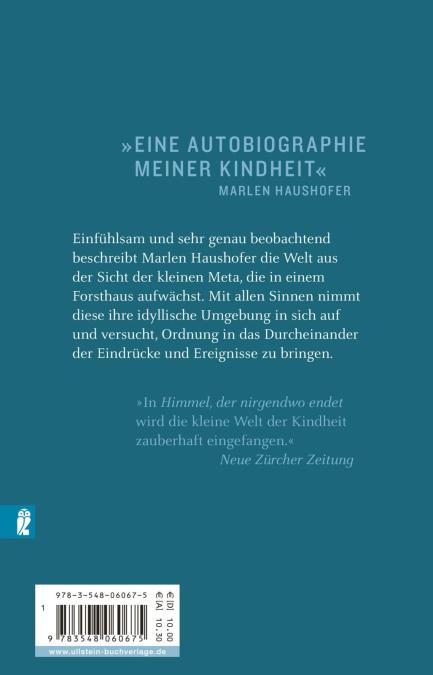 Einfühlsam und sehr genau beobachtend, beschreibt Marlen Haushofer die Welt aus der Sicht der kleinen Meta, die in einem Forsthaus aufwächst. Mit allen Sinnen nimmt diese ihre idyllische Umgebung in sich auf und versucht, Ordnung in das Durcheinander der Eindrücke und Ereignisse zu bringen.