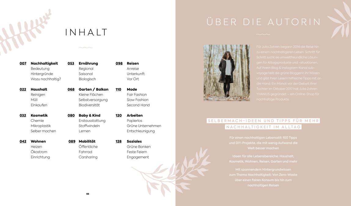 Plastik im Meer, Klimawandel, Ausbeutung - für ein umweltbewusstes und ethisch vertretbares Handeln gibt es genügend gute Gründe. Immer mehr greifen zu Bio und Fair-Trade, nutzen Car-Sharing und hinterfragen ihr eigenes Konsumverhalten. Nachhaltigkeit entwickelt sich immer mehr zu einem Lebensgefühl. Julia Zohren gibt in ihrem Buch über 100 Tipps für alle Lebensbereiche, die mit wenig Aufwand die Welt ein bisschen besser machen: Reinigungsmittel selber machen, wiederverwendbare Abschminkpads, ein Insektenhotel bauen, Seed Bombs verteilen, Bienenwachstücher statt Frischhaltefolie. Dazu gibt sie wertvolles Hintergrundwissen zum Thema Nachhaltigkeit und wichtige Fakten zu den Themen Plastikmüll, Klimawandel und Co.