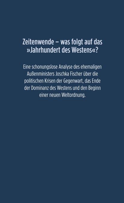 Joschka Fischer untersucht in seiner Studie die dahinterliegenden geopolitischen Verschiebungen, das Ende des »Jahrhunderts des Westens«, den unaufhaltsamen Aufstieg Chinas zur neuen Weltmacht und die dramatischen Erschütterungen, in denen sich die neue Epoche der Weltgeschichte Bahn bricht.Dabei blickt Joschka Fischer auf die gefährlichen Prozesse der Selbstdemontage, die die westliche Welt durchlebt, und die Bedrohungen für den Frieden, die Nationalismus und Isolationismus auch für Europa bedeuten.