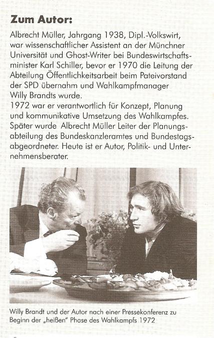 Albrecht Müller, 1938 in Heidelberg geboren, ist Diplom-Volkswirt, Bestsellerautor und Publizist. Er ist Herausgeber der NachDenkSeiten. Müller leitete Willy Brandts Wahlkampf 1972 und die Planungsabteilung unter Brandt und Schmidt. Von 1987 bis