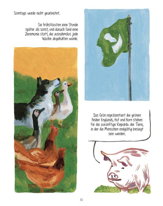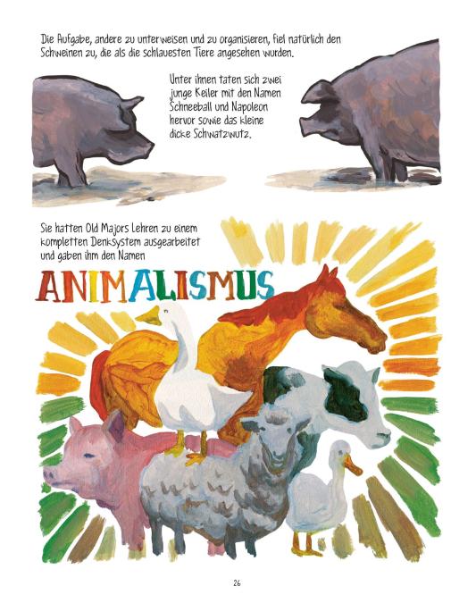 Orwells Werk wurde mitten im Zweiten Weltkrieg geschrieben und 1945 veröffentlicht. Es ist eine der überragenden Erzählungen unserer Zeit, eine universelle Allegorie über die Mechanismen der Macht und menschliche Schwächen, die zeigt, wie große Ideen und hehre Ideale im Mahlwerk von Politik und Gier zerbrechen. Eine Fabel, die heute immer noch so aktuell und wichtig ist, wie zu ihrer Entstehung.