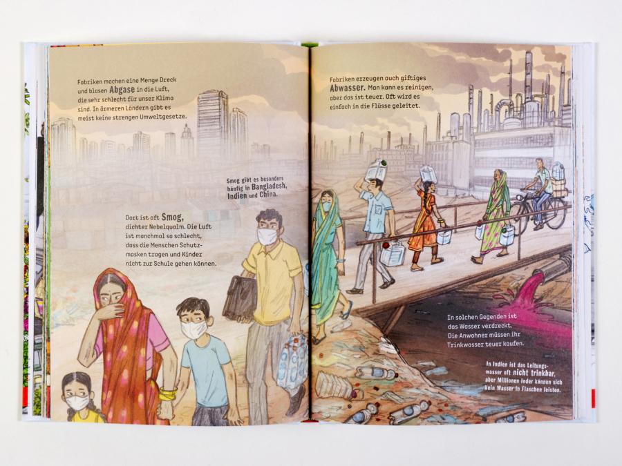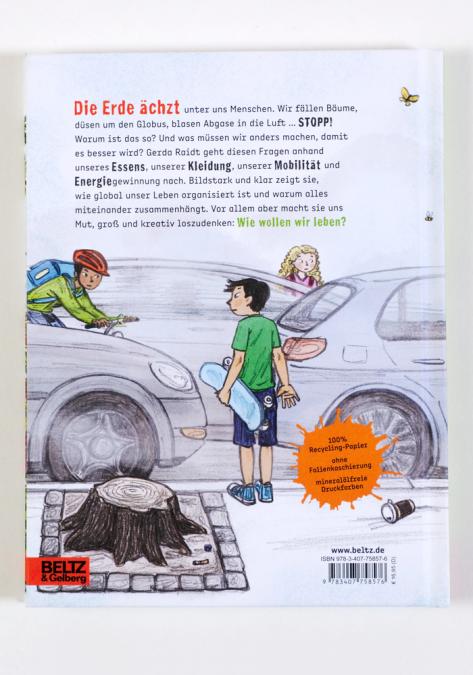 Die Erde ächzt unter uns Menschen. Wir fällen, buddeln, verdrecken, wir kaufen, verbrauchen, reisen, blasen Abgas in die Luft... STOPP! So können wir nicht weitermachen! Gerade Kinder spüren das ganz genau. Doch wie soll unsere Zukunft aussehen? Und warum fällt Veränderung so schwer? Diesen Fragen geht Gerda Raidt in vielen Bildern und knappen Texten nach. Dabei deckt sie auf, welche globalen Verstrickungen hinter unserem Essen, unserem Konsum, unserem Verkehr und unserer Energiegewinnung stecken. Das Verblüffende: Alles hängt mit allem zusammen! Gerda Raidt macht das Komplexe für Kinder konkret und bezieht sie aktiv ein in die Frage Wie wollen wir leben?