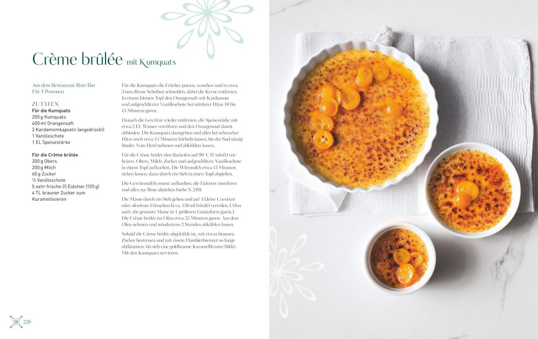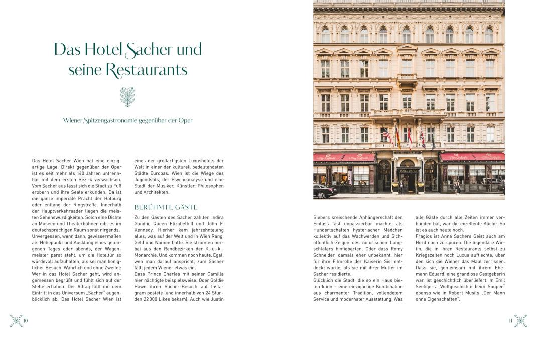 Mit regionalen und saisonalen Gerichten lässt sich die stilvolle Atmosphäre des Hotels überall genießen. Begleitet werden die kulinarischen Highlights von eindrucksvollen Bildern hinter den Kulissen.Wissen und GeschichteSpannende Geschichten und Insider-Wissen über Herstellung, Produkte (Vogerlsalat, Karfiol oder Kren), Lieferanten und natürlich die Weltstadt Wien runden das luxuriöse Erlebnis ab.