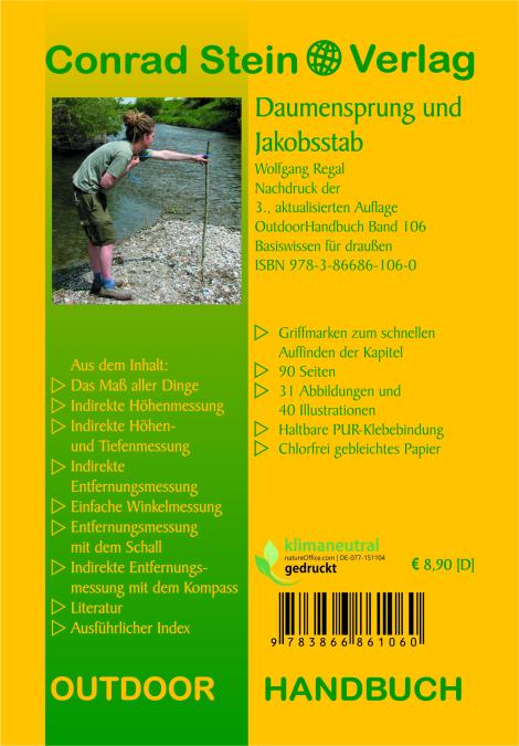 Wie breit ist der Fluss? Wie tief ist die Schlucht? Werden wir diesen Berg noch erreichen können? Die möglichst genaue Beantwortung dieser Fragen kann unter Umständen in der freien Wildbahn lebenswichtig sein. Das Schätzen von Höhen, Tiefen, Entfernungen und Distanzen ist auch bei großer Übung und Erfahrung recht schwierig, und oft verhaut man sich dabei gewaltig. Mit ein paar Tricks und ein wenig Geometrie kann man aber ganz passable, relativ exakte Vermessungsarbeit leisten. In diesem OutdoorHandbuch werden gängige, aber auch wenig bekannte Methoden der indirekten Messung von Entfernungen, Höhen, Tiefen und Winkeln vermittelt. Alle Messungen sind ohne oder mit ganz einfachen technischen Hilfsmitteln durchführbar, die Methoden sind einfach, aber dennoch wissenschaftlich exakt. Zum besseren