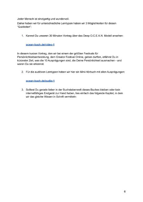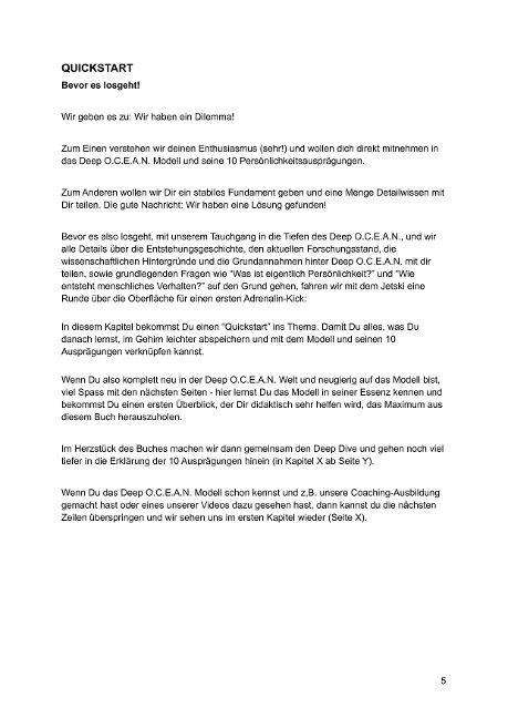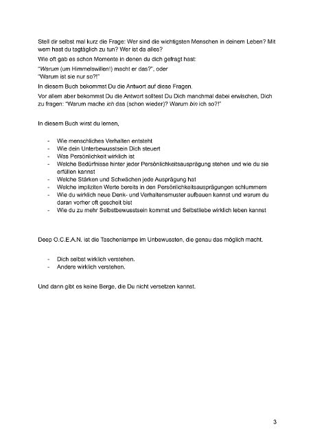 Hinweis zur OptimierungImpressumWichtiger HinweisEinführung: Herzlich willkommen an BordTeil 1: Das FundamentTeil 2. Die 10 Dimensionen deiner PersönlichkeitTeil 3: Deep O.C.E.A.N. in deinem LebenSchlusswort: Gute Reise!Quellen und ErläuterungenDas Deep O.C.E.A.N. PersönlichkeitsmodellDie 10 Dimensionen deiner Persönlichkeit