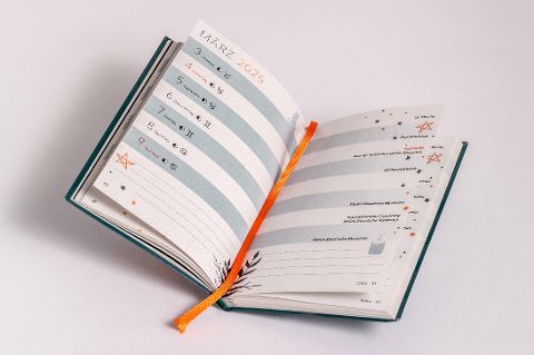 Dazu gibt es reichlich Platz, um persönliche Termine zu notieren und den Alltag zu organisieren.