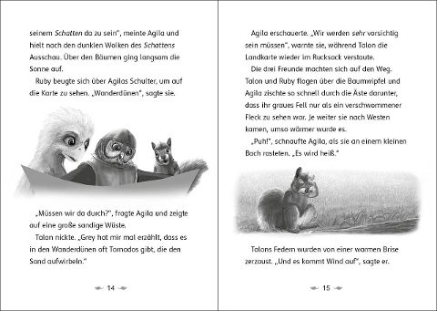 Die Zeit drängt - Burungs finstere Magie breitet sich weiter über Perodia aus. Talon, Agila und Ruby müssen sich beeilen, um das nächste Stück des Steins der Macht zu finden. Auf ihrem Weg zur flüsternden Eiche werden die drei Freunde von einem gefährlichen Sandsturm überrascht. Werden sie es schaffen, ihm zu entkommen und den Stein vor Burungs Spionen zu retten?