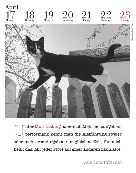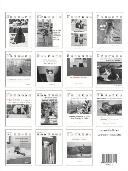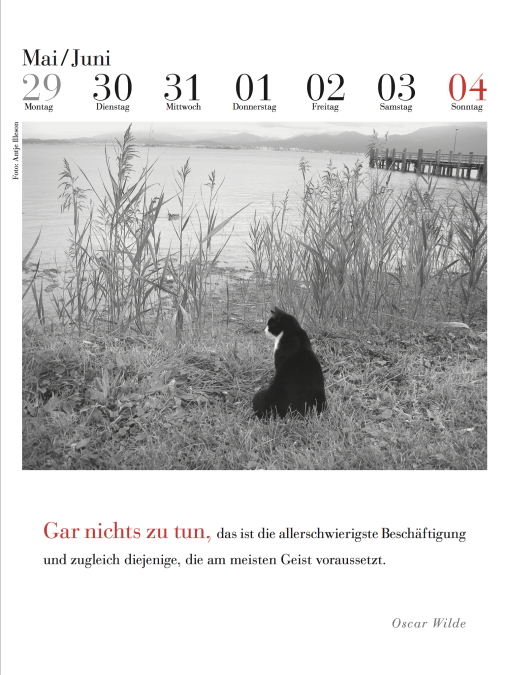 »Der literarische Katzenkalender« blättert auch im Jahr 2023 für alle Katzenfreunde Woche für Woche eine neue Katze auf und lässt Schriftsteller die Schönheit, die Eleganz, die Faulheit, Zärtlichkeit, Neugierde, schlicht: die Persönlichkeit der Katze besingen und beschreiben.