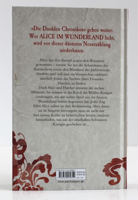 Alice hat den Kampf gegen den Wahnsinn gewonnen - vorerst. Sie hat die Schandtaten des Kaninchens sowie den Blutdurst des Jabberwocks überlebt und will nun ein Versprechen einlösen: Jenny, die Tochter ihres Freundes Hatcher, zu finden. Doch Alice und Hatcher erwartet der nächste Albtraum. Sie müssen in das Reich der verrückten Weißen Königin vordringen, wo das wahre Spiel um das finstere Wunderland bereits begonnen hat. Jeder Zug führt Alice näher an ihre Bestimmung. Aber damit sie als Siegerin hervorgeht, muss sie nicht nur ihre neuen Kräfte zu beherrschen lernen, sondern herausfinden, was mit der rätselhaften Schwarzen Königin geschehen ist ...