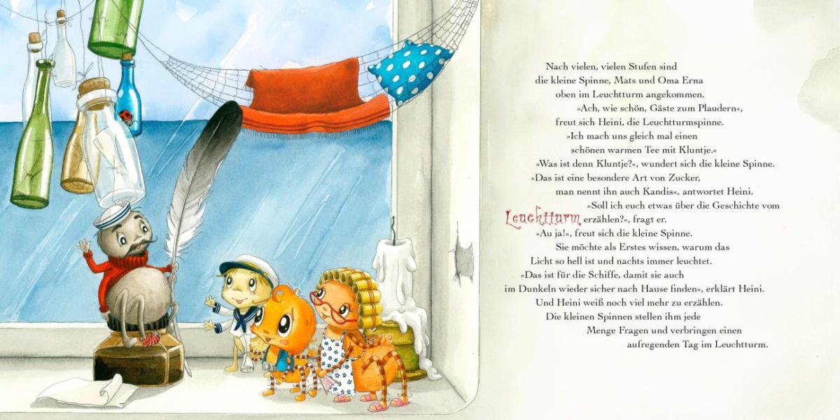 Die kleine Spinne Widerlich muss Koffer packen, denn es geht auf große Reise. Gemeinsam mit Oma Erna macht sie Ferien am Meer. Sie lernt Mats, die Matrosenspinne, kennen und staunt über Ebbe und Flut, Muscheln und Wattwürmer, salziges Wasser und Berge aus Sand. Sogar auf einen echten Leuchtturm darf sie klettern. Was es am Meer doch alles zu entdecken gibt! Ein zauberhaftes Ferienabenteuer von Diana Amft, der aus Film und Fernsehen bekannten Schauspielerin
