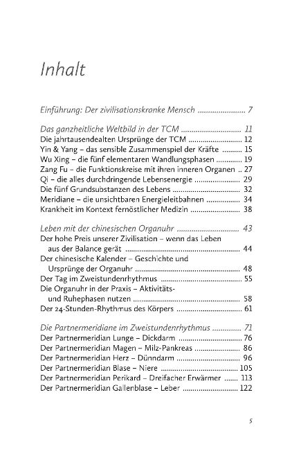 Leben mit der chinesischen Organuhr - Der hohe Preis unserer Zivilisation - wenn das Leben aus der Balance gerät - Der chinesische Kalender - Geschichte und Ursprünge der Organuhr - Der Tag im Zweistundenrhythmus - Die Organuhr in der Praxis - Aktivitäts- und Ruhephasen nutzen - Der 24-Stunden-Rhythmus des Körpers