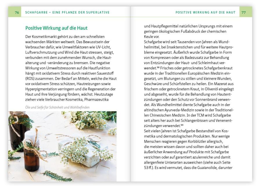 - in der Wissenschaft: Inhaltsstoffe, Heilwirkungen und Einsatzgebiete - in der Hausapotheke: Heilanwendungen innerlich und äußerlich- in Küche und Garten: gesunde Rezepte und praktische Tipps- für Haut und Haar: Kosmetik zum Selbermachen