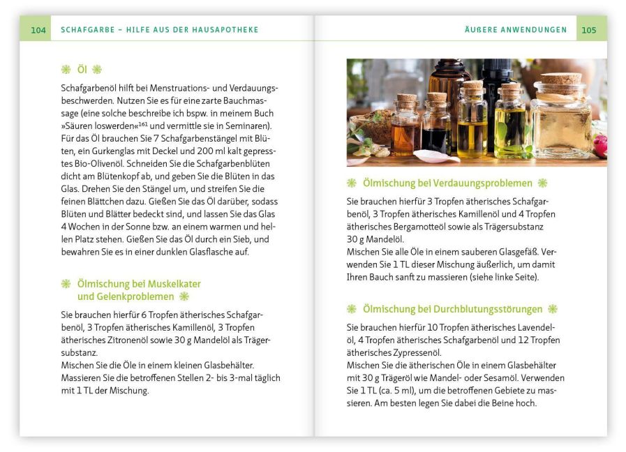 SCHAFGARBE - HILFE AUS DER HAUSAPOTHEKEDie Anwendung für Gesundheit und Wohlbefinden- Äußere Anwendungen- Innere AnwendungenErfahrungsberichte rund um die Schafgarbe- Arthritis- Herzprobleme- Seelische und neurologische Themen- Unterleibsbeschwerden- Verdauungsbeschwerden und -krankheiten