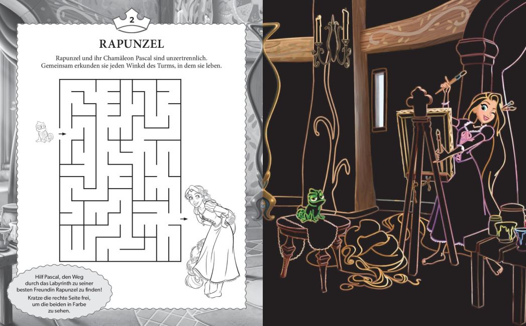 Rätsel dich durch spannende Labyrinthe und hilf Cinderella dabei, zur guten Fee zu gelangen oder zeige Pascal den Weg zu Rapunzel.