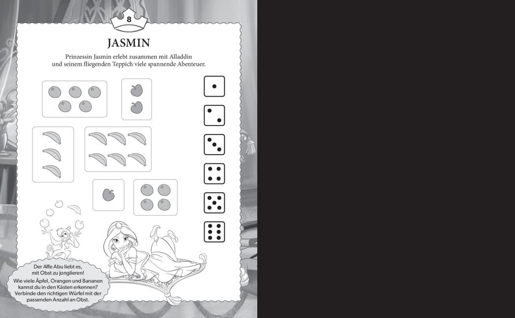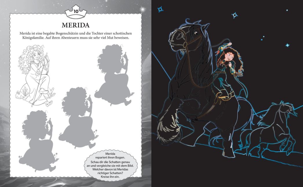 Kannst du auch die Schattenrätsel lösen und den richtigen Schatten von Arielle, Merida oder Mulan finden? Male die schönen Ausmalbilder von Schneewittchen, Pocahontas oder Vaiana mit deinen Buntstiften aus und verziere sie nach Belieben mit deinen eigenen, kreativen Ideen. Dieses Buch ist vollgepackt mit abwechslungsreichen Aktivitäten und es hat viel Platz, um selbst kreativ zu werden!