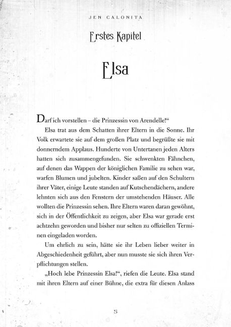 Sie ist zur Herrscherin bestimmt, doch etwas fehlt. Jemand fehlt. Nach dem plötzlichen Tod ihrer Eltern muss Prinzessin Elsa sich schneller in ihre Rolle als Königin von Arendelle fügen als gedacht. Und auf magische Weise gehen damit lang verschüttete Erinnerungen einher. Erinnerungen an ein ihr bekannt erscheinendes Mädchen. Wer ist dieses Mädchen, das ihr so schmerzhaft und innig vertraut vorkommt? Elsa macht sich auf die Suche nach ihr und beginnt eine gefährliche Reise, um einen schrecklichen Fluch zu lösen - und um zu finden, was ihr seit Jahren fehlt.