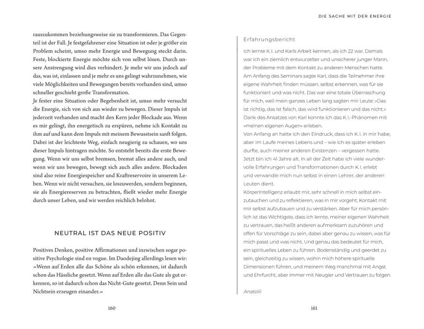 Seit Jahrtausenden wird in Asien von einer verborgenen Kraft gesprochen, durch die unglaubliche Dinge möglich sind: Ki. Karl Grunick zeigt, dass diese Kraft alles andere als mystisch ist. In seinen Seminaren finden Menschen wieder einen Zugang zu ihr - über ihre KörperIntelligenz. Der Körper ist in unserer modernen Lebensweise oft zum Träger des Geistes verkommen, dabei liegt in ihm der Schlüssel zu einer tiefen Weisheit. Wer wieder Zugang zu seiner KörperIntelligenz findet, erlebt eine vorher kaum gekannte Leichtigkeit, Energie, Kraft und Gelassenheit. Viele Situationen des Alltags fließen auf einmal wie von selbst. Dieses Buch bietet dem Leser einen Einblick in diese Welt und stellt eine Einladung dar, sie selbst zu erfahren.