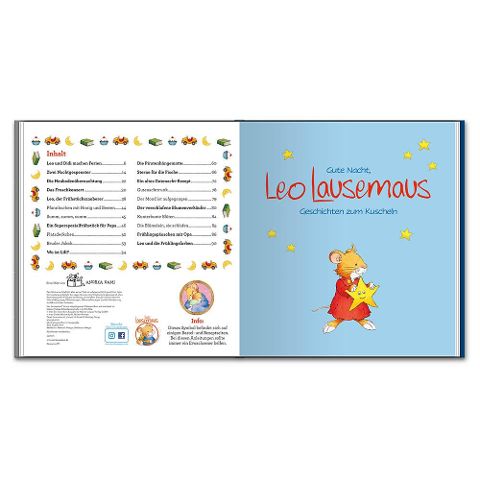 Leo Lausemaus Der kleine freche Leo Lausemaus ist seit bereits über 15 Jahren der Liebling unserer Kleinen. Denn diese schönen Vorlesegeschichten sind voll und ganz auf die Lebenswelt kleiner Kinder zugeschnitten - egal ob Mädchen oder Jungen. Weil Leo in jeder seiner Geschichten typische Kindergartensituationen meistert, werden auf diese Weise kleinen Kindern Lösungen für die Probleme des Alltags angeboten. Die kindgerechten Texte sind ideal zum Vorlesen für zwischendurch, aber auch hervorragend als Gute-Nacht-Geschichte geeignet. Mit Leo Lausemaus wird das Zubettgehen zu einem wunderbaren Ritual. Leo Lausemaus ist nicht nur für Kinder im Kindergartenalter empfehlenswert. Sogar schon Babys ab 6 bis 12 Monaten und Kleinkinder können sich über Leos fröhliche Kindergeschichten freuen. Die liebevoll gestalteten Bilder regen die kindliche Fantasie an und sind auch für Vorschulkinder zugänglich. Verbringen Sie beim Vorlesen mit Ihren Kleinen wertvolle Qualitätszeit. Denn mit den Kurzgeschichten von Leo Lausemaus lassen sich kleine Inseln im Alltag schaffen.