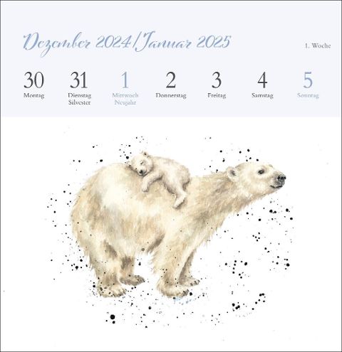 - Detailverliebte Kalender-Kunst: Süße Tierbilder in einem Kalender mit Postkarten zum Sammeln oder Verschicken- Hannah Dale und ihr Unternehmen Wrendale Design sind bekannt für ihre schönen Tierzeichnungen, die von Tassen bis Grußkarten zahlreiche Alltagsgegenstände verschönern- Der Hannah Dale Kalender im kleinen Hochformat 16,5 x 17,7 cm findet auf jedem Schreibtisch Platz- Von Pinguinen bis Hundewelpen: Die 53 Tierzeichnungen in dem Wochenkalender 2025 begeistern immer wieder aufs Neue- Postkarten-Tischkalender von Heye im Athesia Kalenderverlag: Der passende Blickfang für jeden Geschmack!