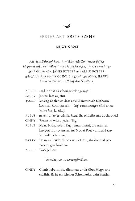 Es war nie leicht, Harry Potter zu sein - und jetzt, als Angestellter des Zaubereiministeriums, Ehemann und Vater von drei Schulkindern, ist sein Leben nicht gerade einfacher geworden. Während Harrys Vergangenheit ihn immer wieder einholt, kämpft sein Sohn Albus mit dem gewaltigen Vermächtnis seiner Familie, mit dem er nichts zu tun haben will. Als Vergangenheit und Gegenwart auf unheilvolle Weise miteinander verschmelzen, gelangen Harry und Albus zu einer bitteren Erkenntnis: Das Dunkle kommt oft von dort, wo man es am wenigsten erwartet. Das Drehbuch zum Theaterstück