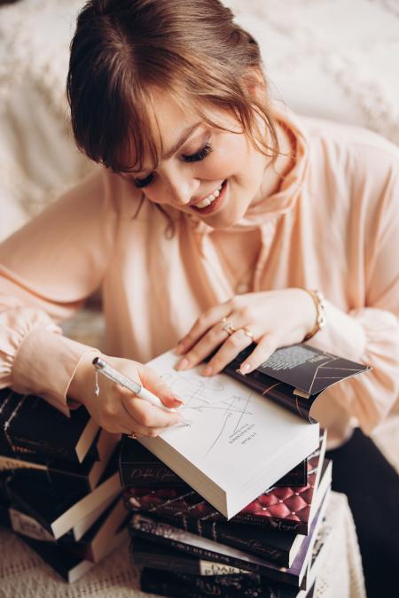 Heute lebt sie mit Mann, Hund und Kindern in der Nähe des wunderschönen Weserberglandes und ist froh, dass niemand im Kindergarten weiß, worüber sie schreibt.